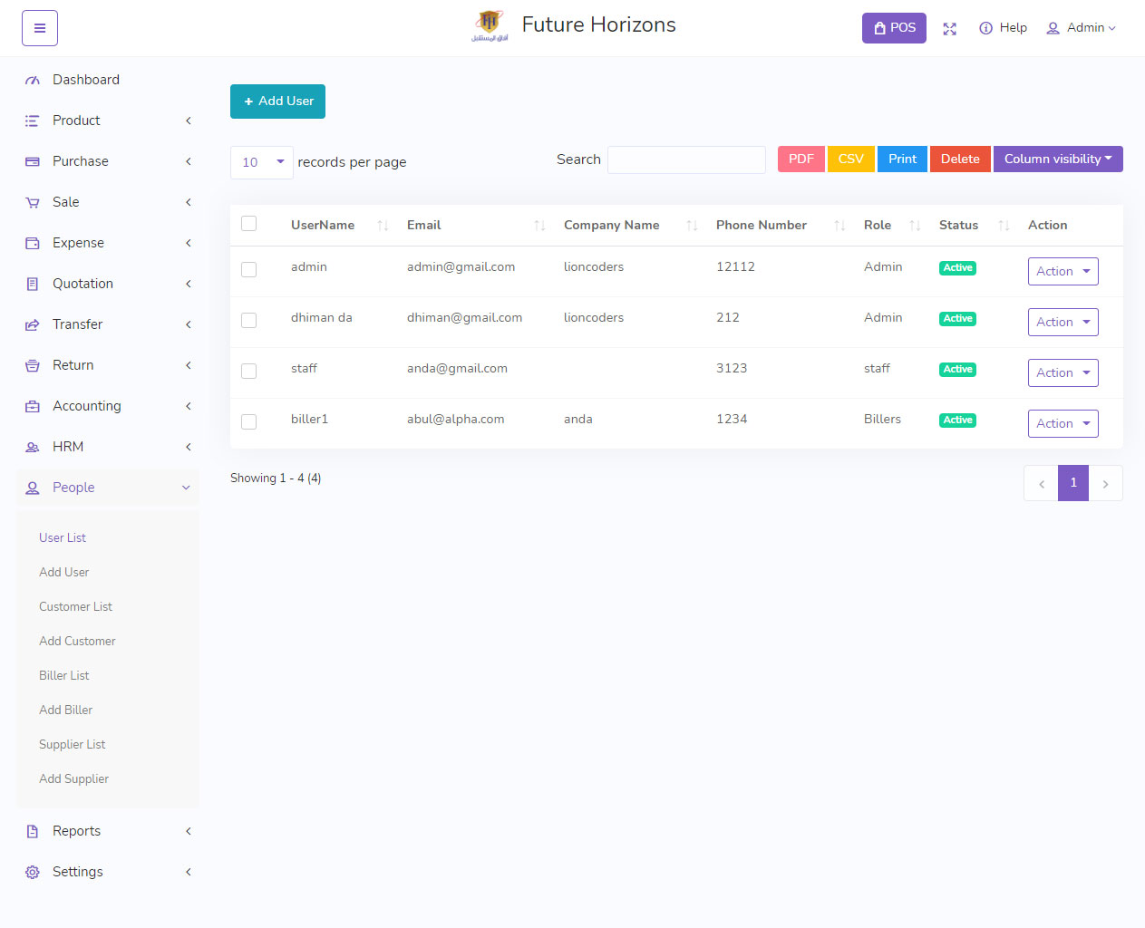 Add, edit, delete & view customers, billers, suppliers