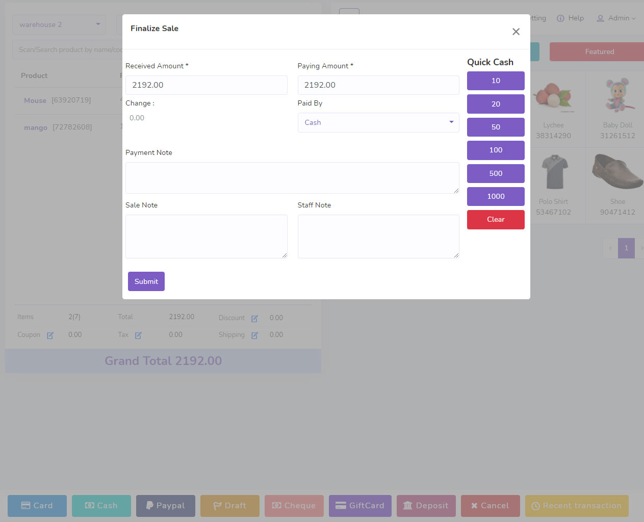 Sale Purchase POS – Inventory Management System with POS (Point of Sale) is a laravel(php) based stock/inventory management system that allows you to manage your inventory, sales, purchases, customers, invoices, take payments and much more.